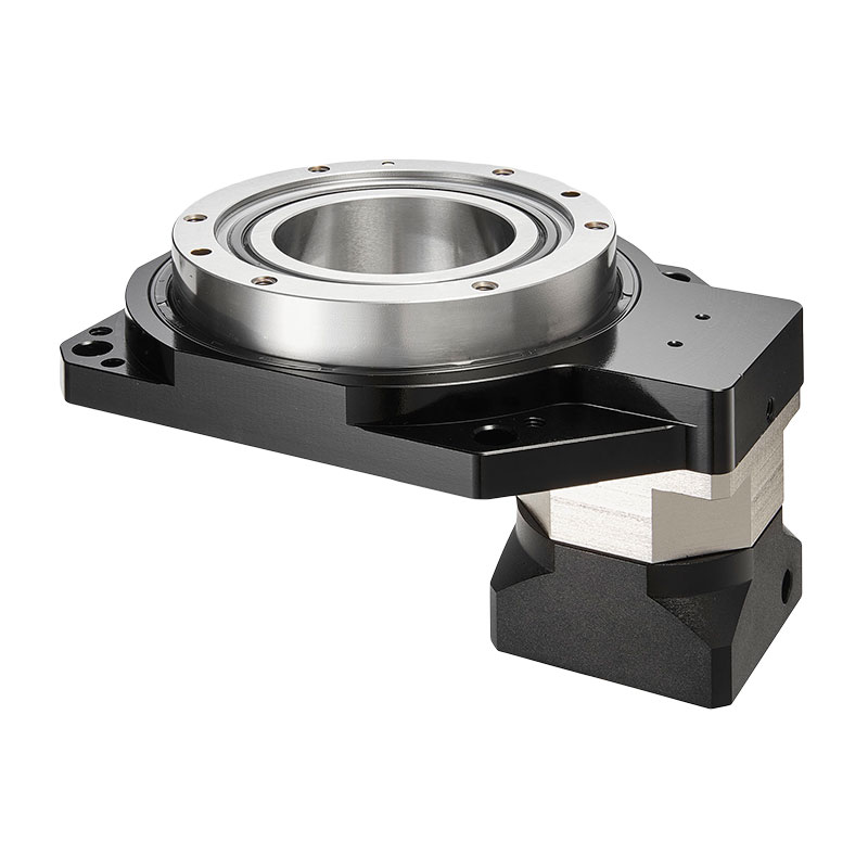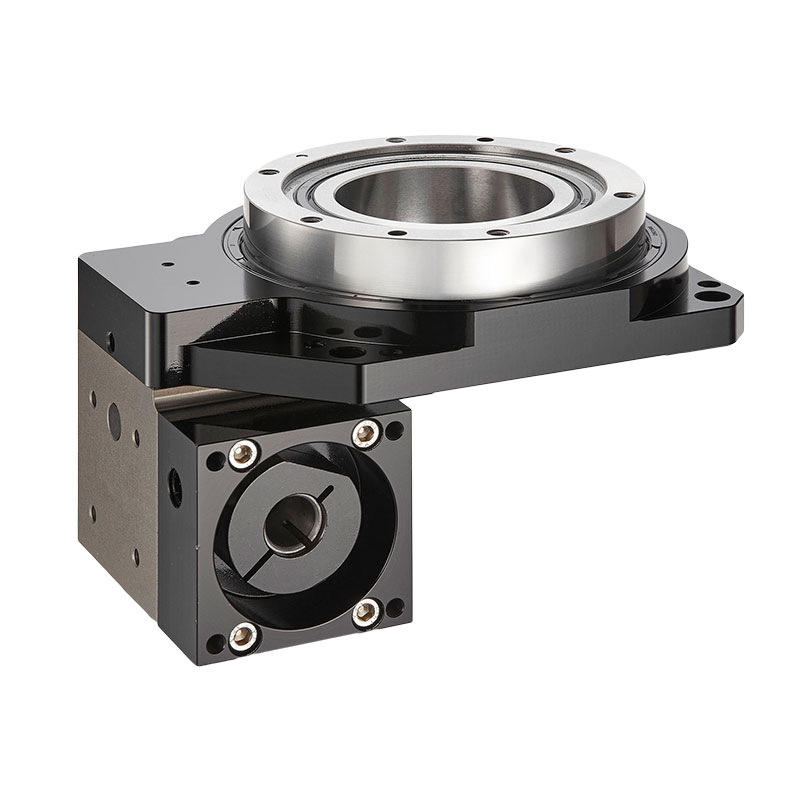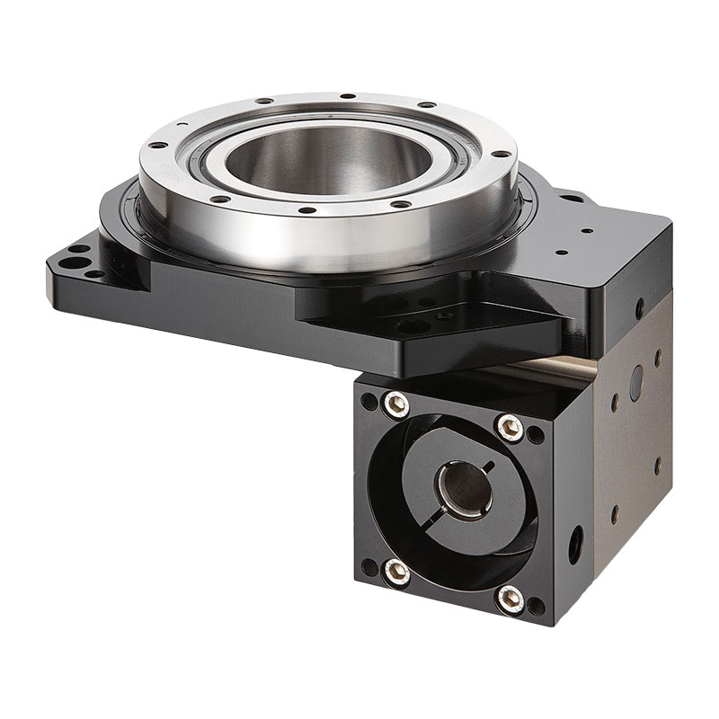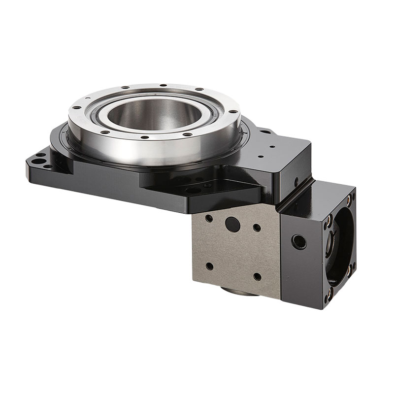 GD中空旋轉平臺采用單級螺旋齒輪減速方式來增大輸出扭矩,齒輪精度等級JIS2級以上,加之靈活的調隙機構,通過改變兩齒輪中心距的方式來控制側隙,使得中空旋轉平臺的空回極小,重復定位精度在1 5弧秒以下。