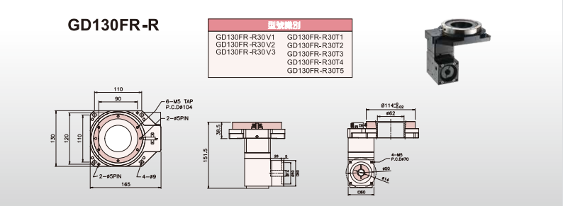 轉盤為中空結構.伺服電機連接在側邊,方便冶具中的氣管、電線安裝。