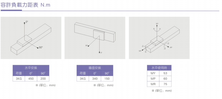 3、加減速度會使搬運質量產生慣性負荷,加減速度越大可搬運質量會越?。欢疫^大的加減速度會產生較大的重勢力,設計時需納入考量規范。