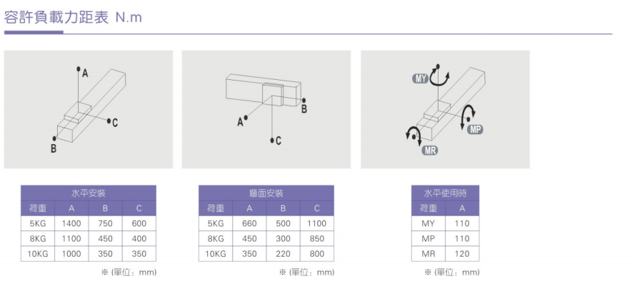 3、加減速度會使搬運質量產生慣性負荷,加減速度越大可搬運質量會越??;而且過大的加減速度會產生較大的重勢力,設計時需納入考量規范。