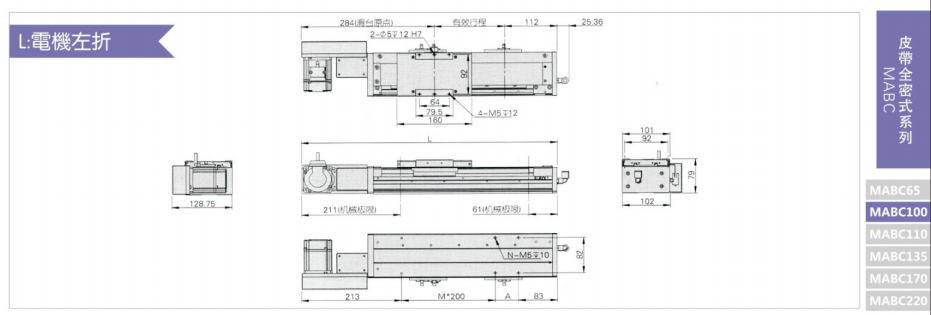 B驅動方式可依照使用需要選擇滾珠螺桿驅動或時規皮帶驅動。