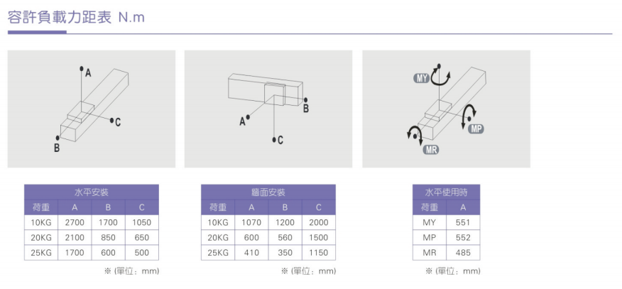3、加減速度會使搬運質量產生慣性負荷,加減速度越大可搬運質量會越小;而且過大的加減速度會產生較大的重勢力,設計時需納入考量規范。