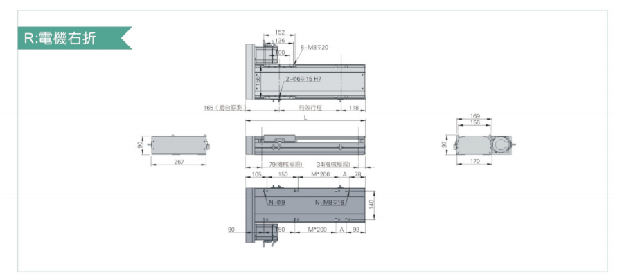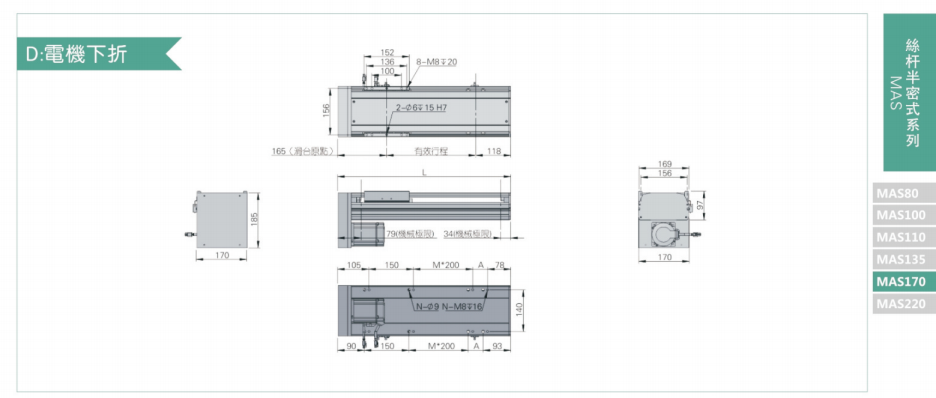 B驅動方式可依照使用需要選擇滾珠螺桿驅動或時規皮帶驅動。