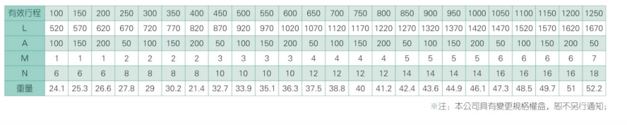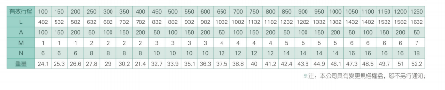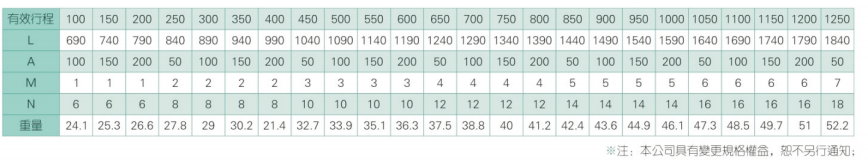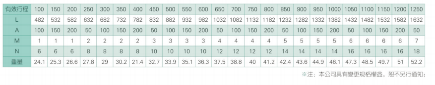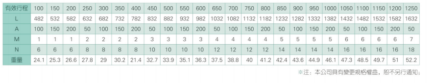 2、螺桿轉速超過臨界轉速時可能發生共振,臨界轉速和螺桿長度有關,故滾珠螺桿的臨界轉速也間接決定了滑臺模組的有效行程和總長度,有效行程和常用螺桿規格轉速的關系如下列表格。