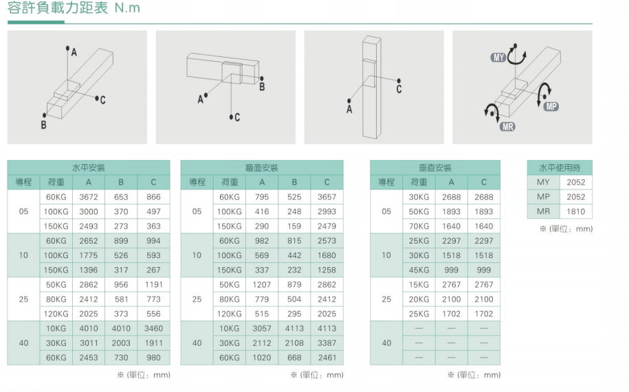 3、加減速度會使搬運質量產生慣性負荷,加減速度越大可搬運質量會越小;而且過大的加減速度會產生較大的重勢力,設計時需納入考量規范。