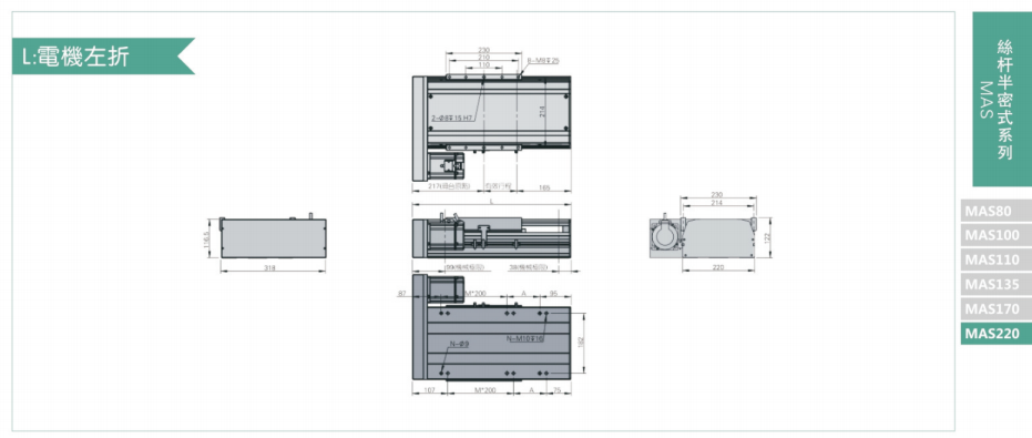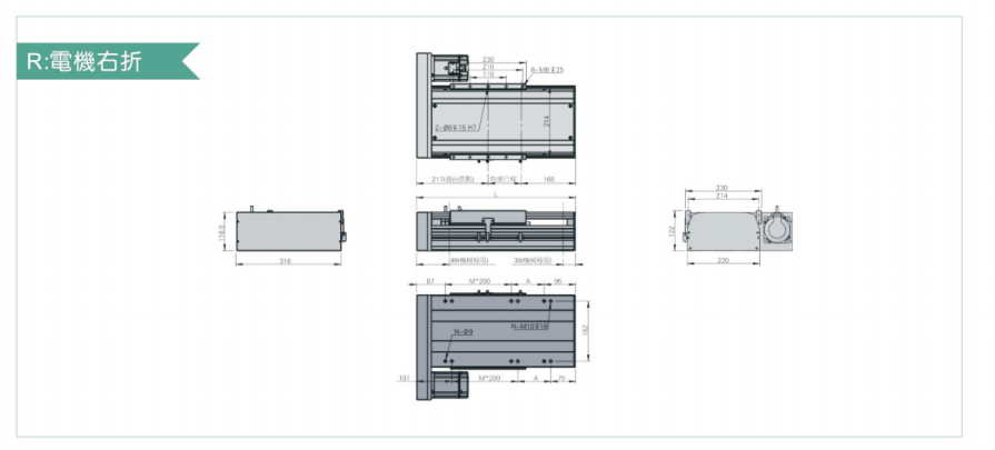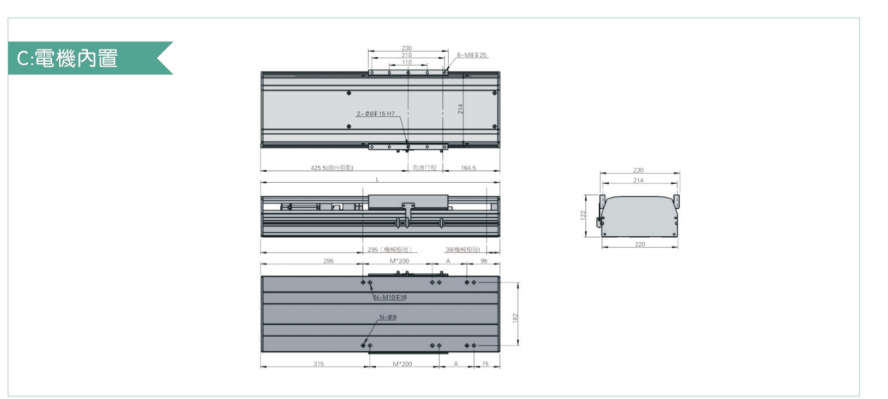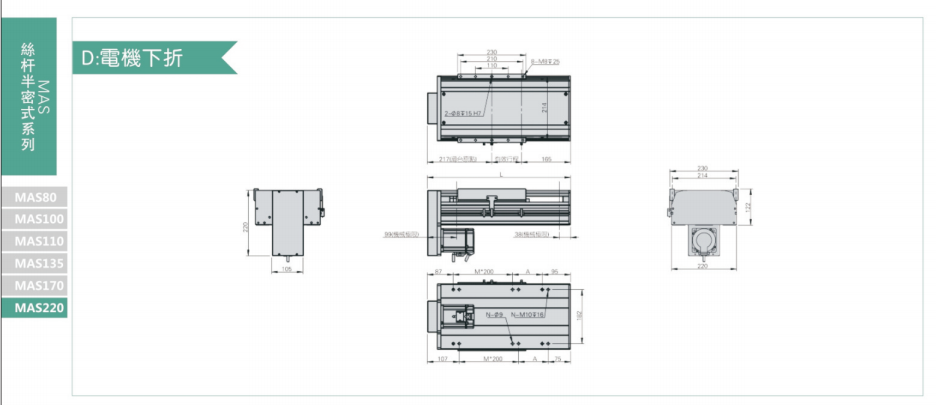 B驅動方式可依照使用需要選擇滾珠螺桿驅動或時規皮帶驅動。