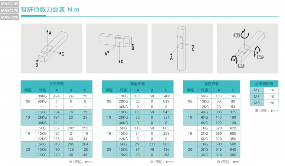 3、加減速度會使搬運質量產生慣性負荷,加減速度越大可搬運質量會越小;而且過大的加減速度會產生較大的重勢力,設計時需納入考量規范。