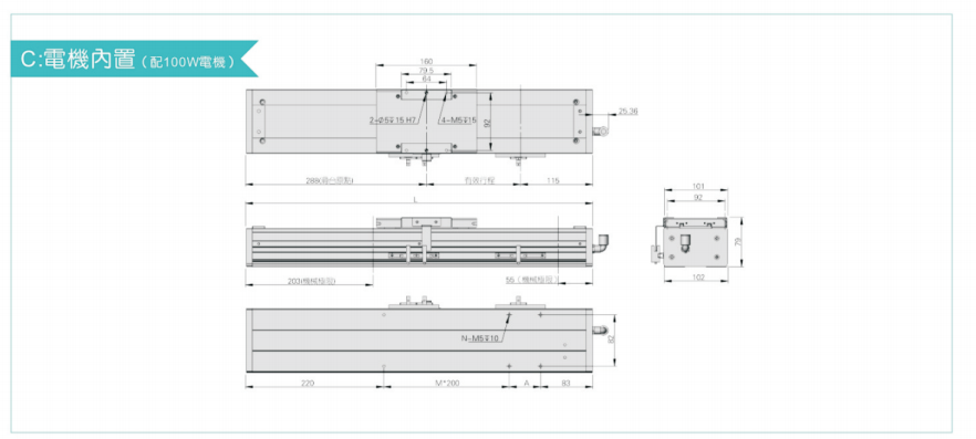 B驅動方式可依照使用需要選擇滾珠螺桿驅動或時規皮帶驅動。