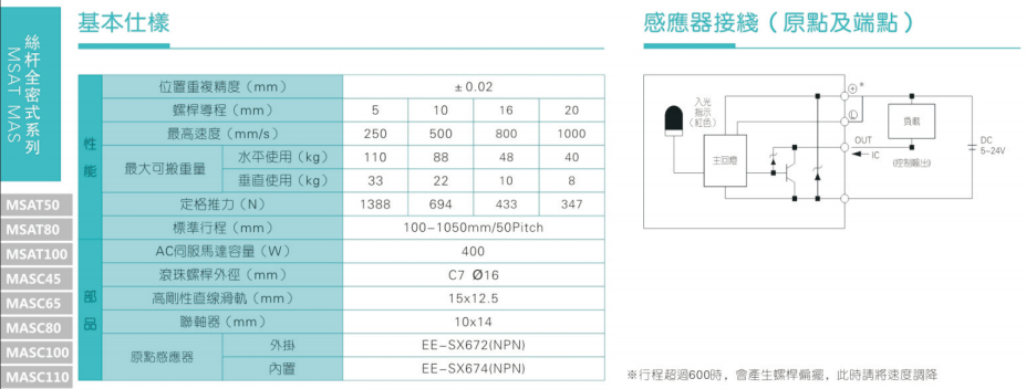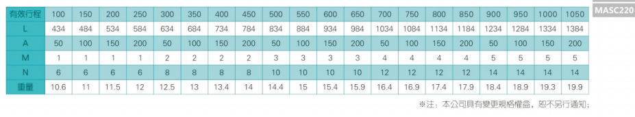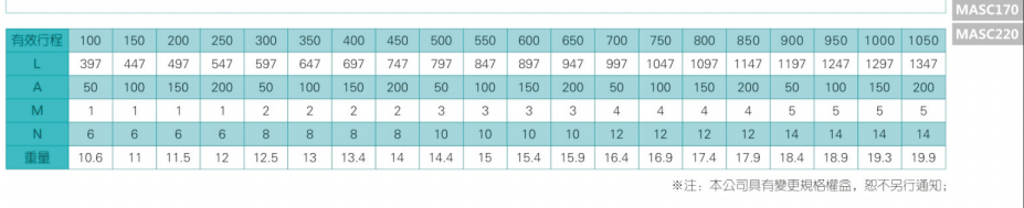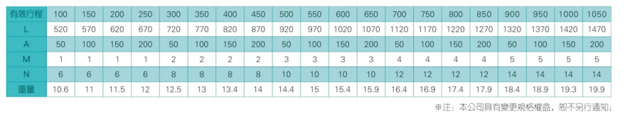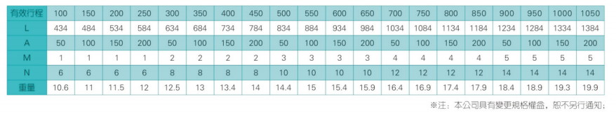2、螺桿轉速超過臨界轉速時可能發生共振,臨界轉速和螺桿長度有關,故滾珠螺桿的臨界轉速也間接決定了滑臺模組的有效行程和總長度,有效行程和常用螺桿規格轉速的關系如下列表格。