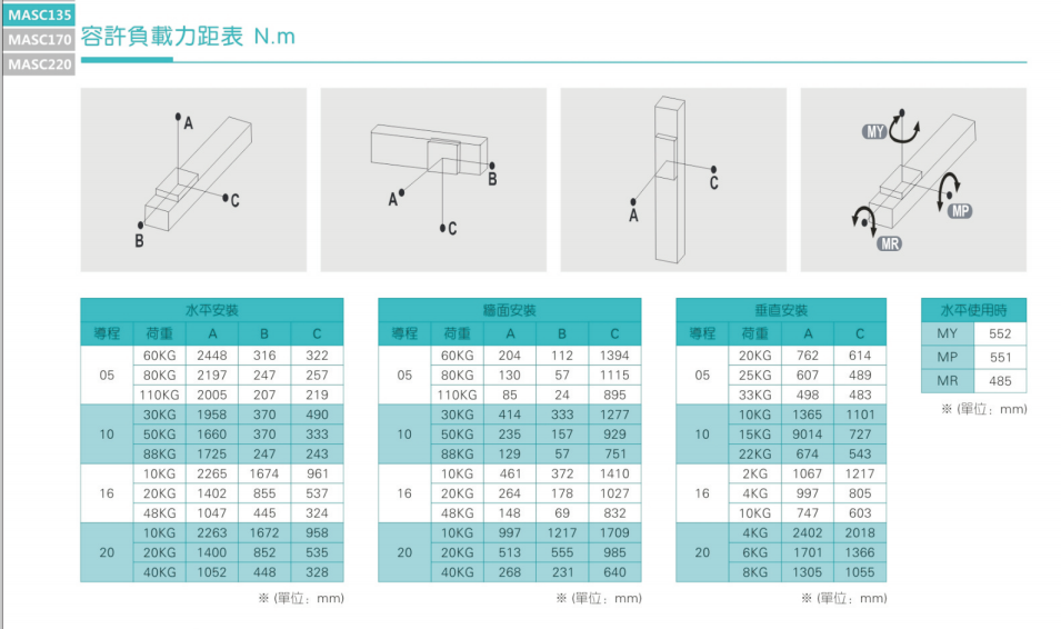 3、加減速度會使搬運質量產生慣性負荷,加減速度越大可搬運質量會越小;而且過大的加減速度會產生較大的重勢力,設計時需納入考量規范。