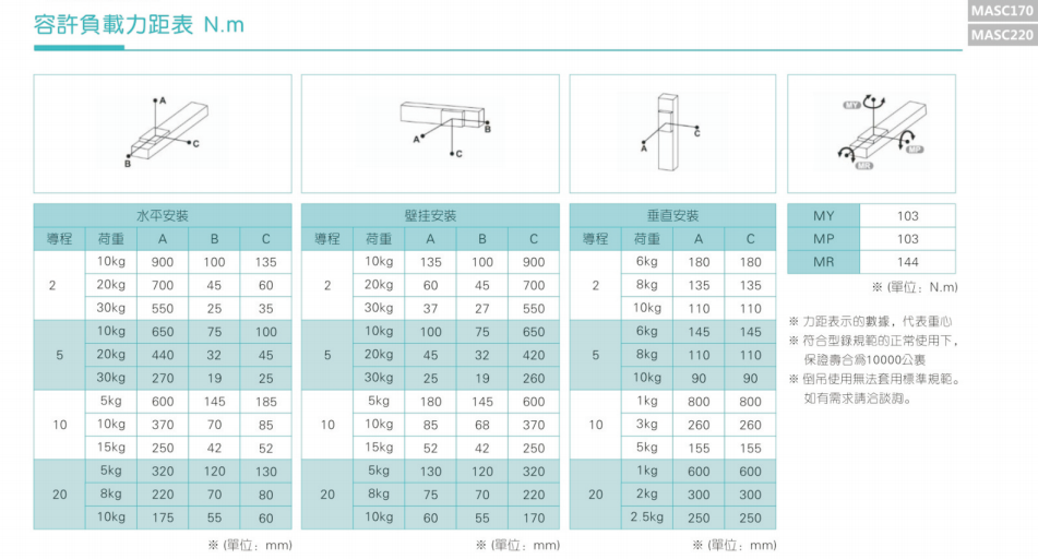3、加減速度會使搬運質量產生慣性負荷,加減速度越大可搬運質量會越小;而且過大的加減速度會產生較大的重勢力,設計時需納入考量規范。