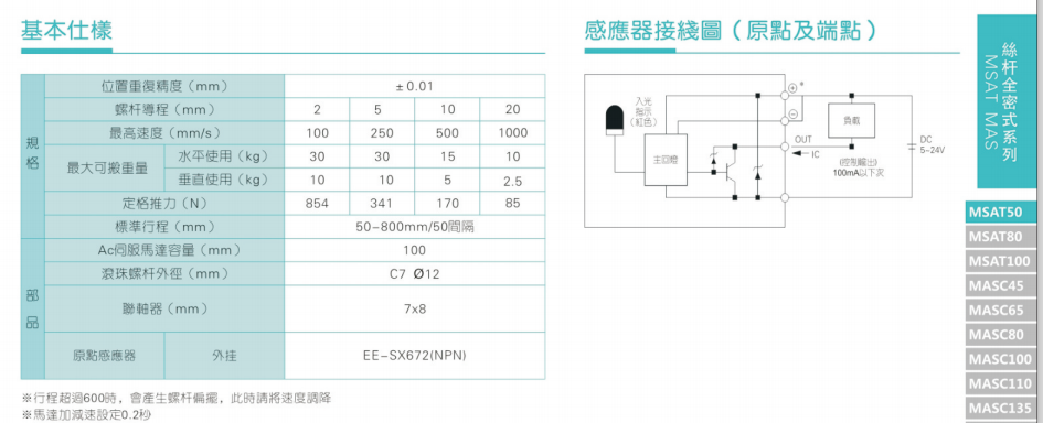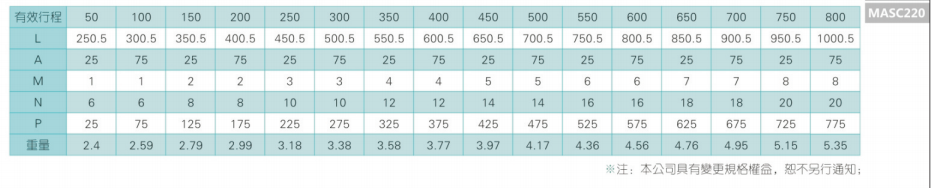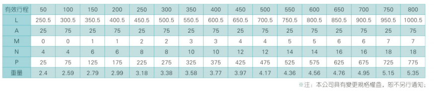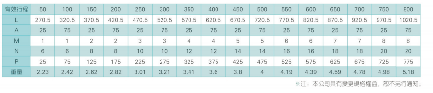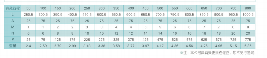 2、螺桿轉速超過臨界轉速時可能發生共振,臨界轉速和螺桿長度有關,故滾珠螺桿的臨界轉速也間接決定了滑臺模組的有效行程和總長度,有效行程和常用螺桿規格轉速的關系如下列表格。