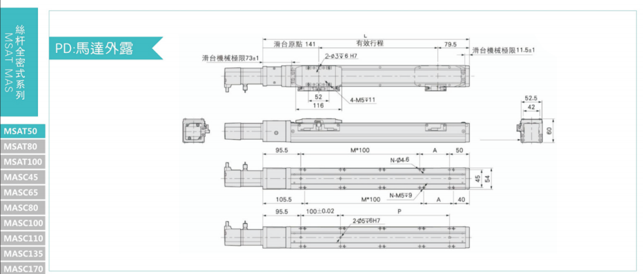 B驅動方式可依照使用需要選擇滾珠螺桿驅動或時規皮帶驅動。