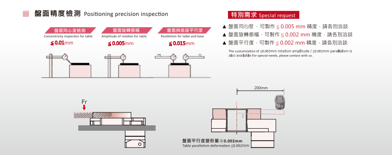 一、旋轉盤本體使用合金材料,經"μ”級加工機,車銑完成·確保各部之精準度。